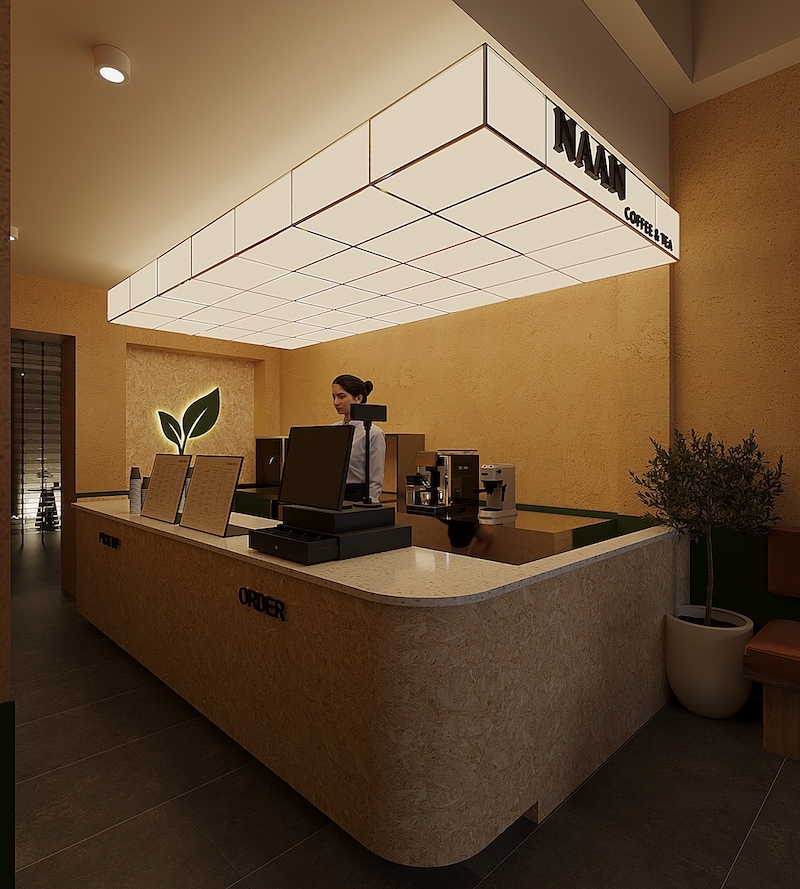 Không chỉ đóng vai trò là khu vực phục vụ chính, quầy bar còn được thiết kế với cá tính riêng biệt – đủ nổi bật để ghi dấu ấn thương hiệu, nhưng vẫn đảm bảo hòa quyện vào tổng thể chung. Đây là nơi hội tụ giữa thẩm mỹ, chức năng và trải nghiệm – vừa phục vụ, vừa kể câu chuyện về phong cách và tinh thần của Naan Coffee & Tea.