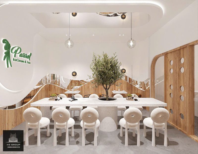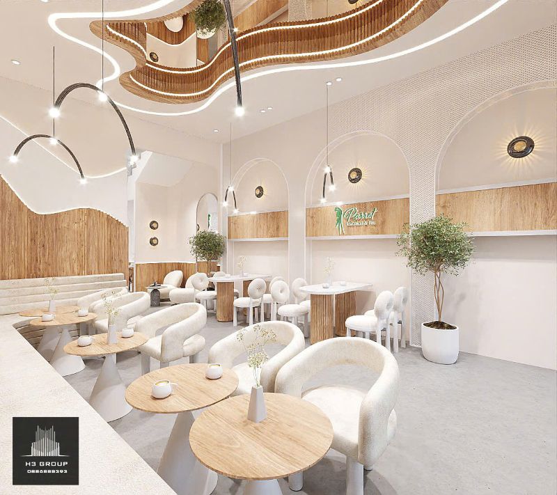 Kết quả là, công trình được H3 Group bàn giao đúng tiến độ, kịp khai trương vào dịp Tết như kỳ vọng của chủ đầu tư. Không gian Parrot Cafe mang lại ấn tượng thị giác mạnh với trần nhà uốn cong nghệ thuật, ánh sáng dịu nhẹ và chất liệu gỗ sáng phối màu tinh tế. Tất cả tạo nên một tổng thể hiện đại, thu hút và dễ lan truyền trên mạng xã hội – một lợi thế rõ rệt trong thời đại “check-in” ngày nay.