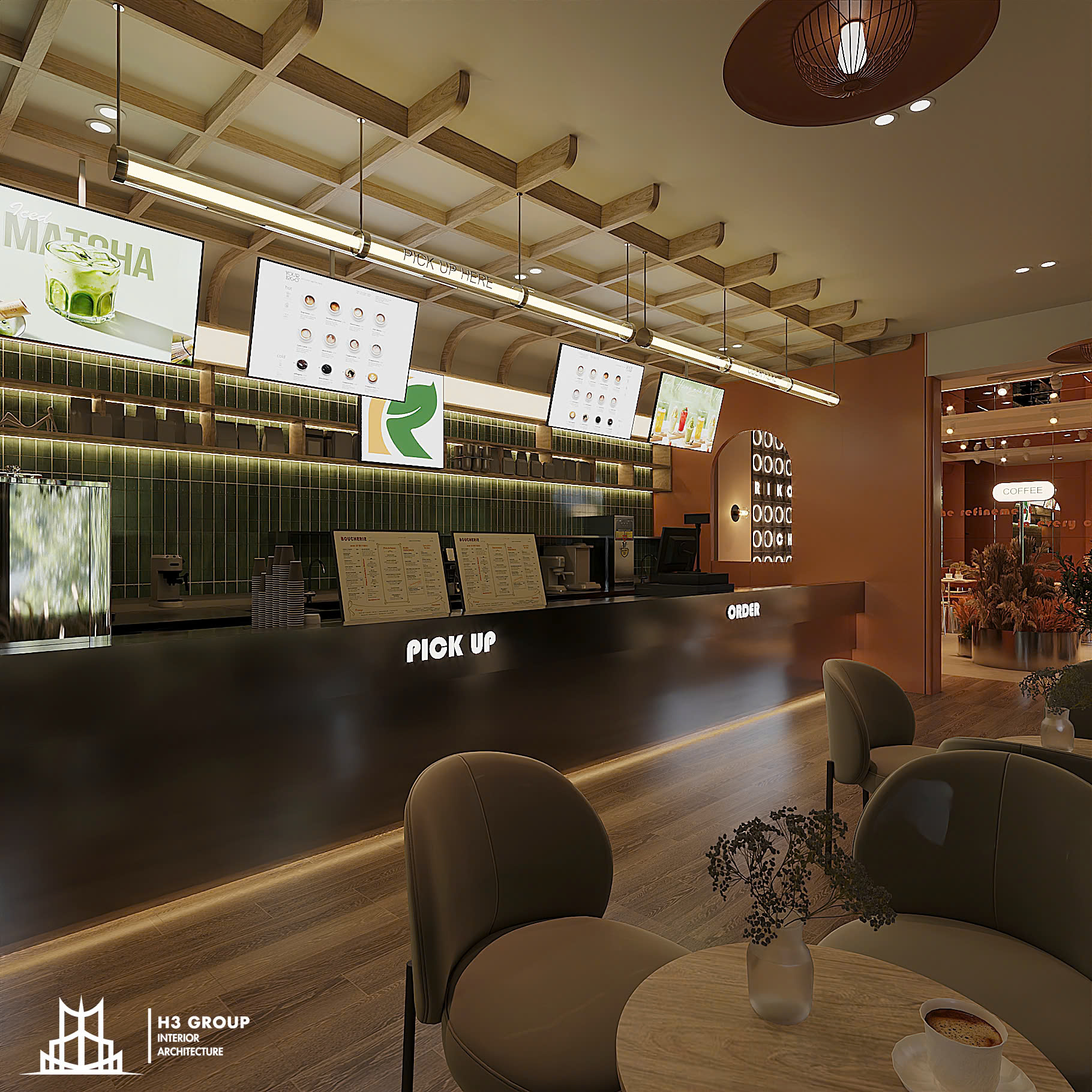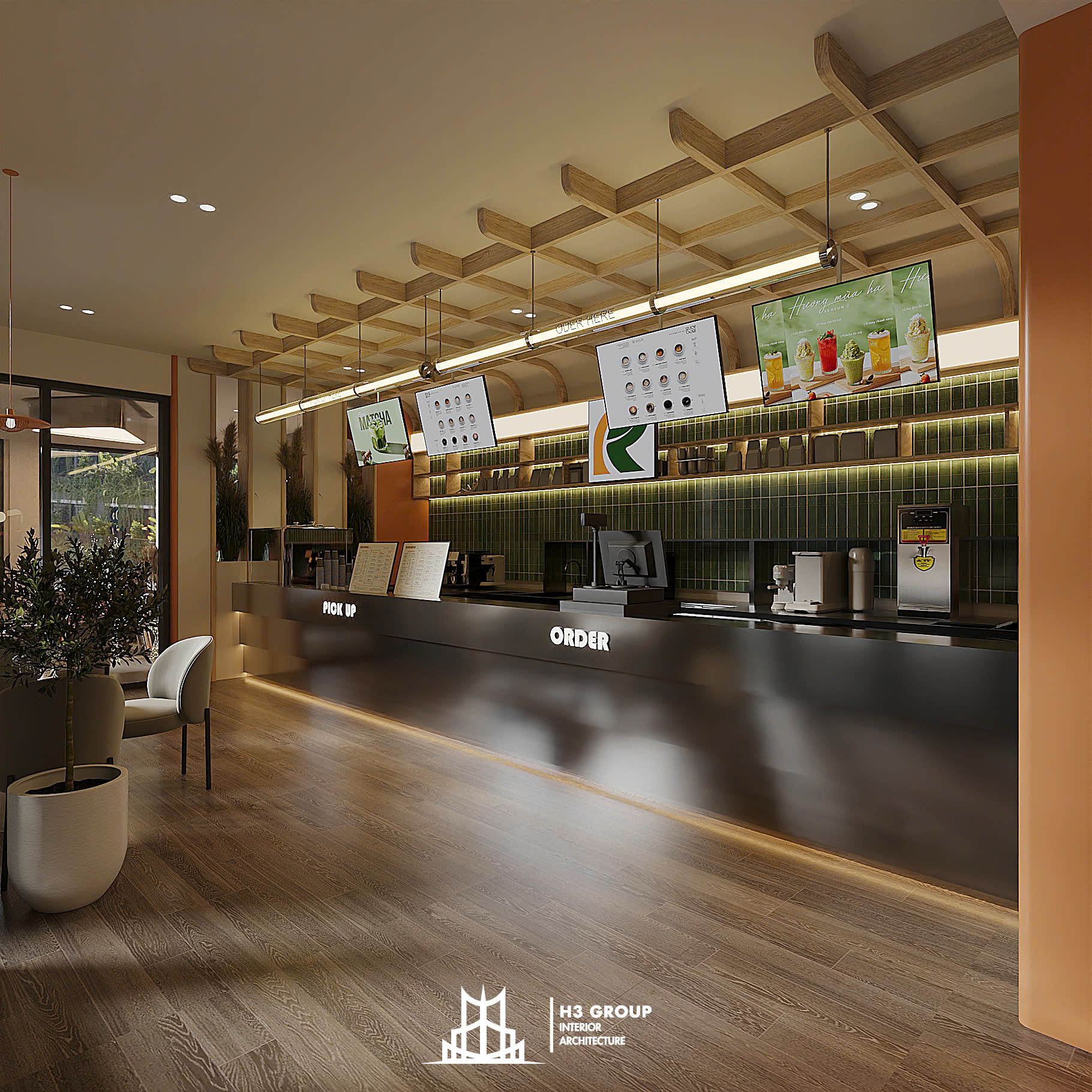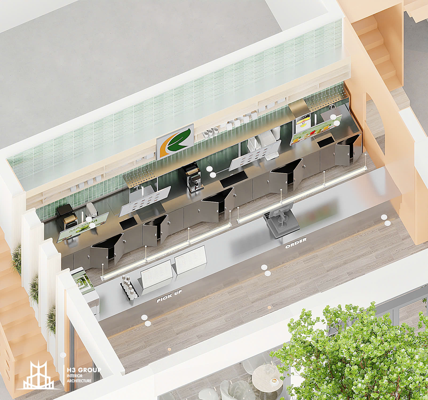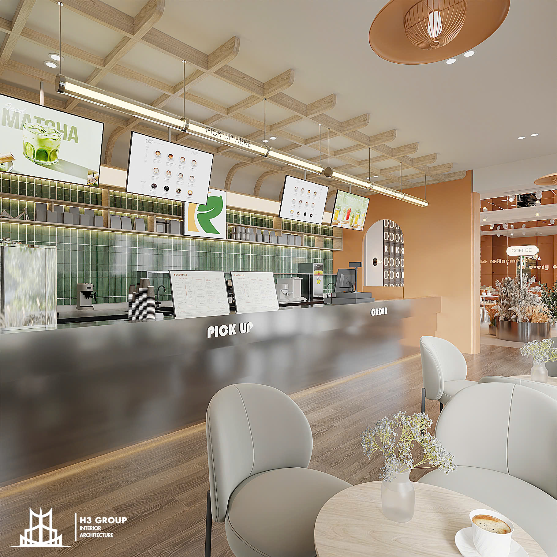 Bố cục quầy được tính toán kỹ lưỡng nhằm tối ưu hóa quy trình pha chế, giúp nhân viên thao tác linh hoạt và hiệu quả trong giờ cao điểm. Sự kết hợp hài hòa giữa công năng và thẩm mỹ không chỉ mang lại tiện ích cho hoạt động vận hành mà còn tạo nên một điểm nhấn thị giác thu hút ngay khi khách bước vào.