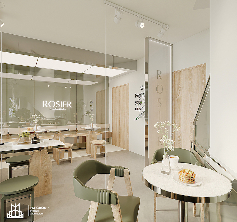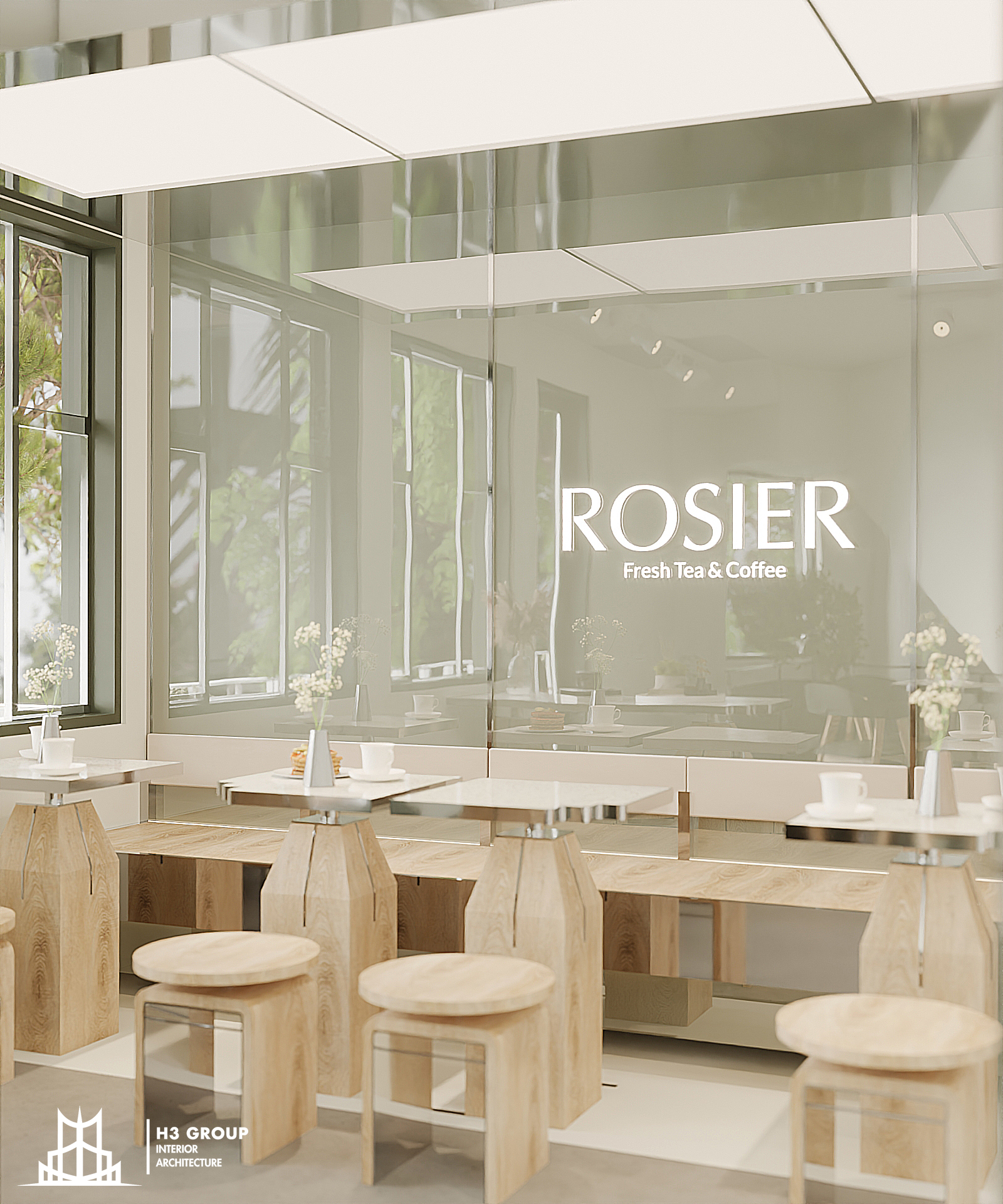 Trong quá trình tái thiết kế, H3 Group tập trung phát triển một bộ nhận diện hiện đại, tinh tế, đồng thời gìn giữ giá trị cốt lõi của Rosier: phong cách Hàn Quốc nhẹ nhàng – tối giản – tinh tế, đặt trọng tâm vào cảm giác thư giãn và thoải mái tự nhiên cho khách hàng trong mọi trải nghiệm tại quán.