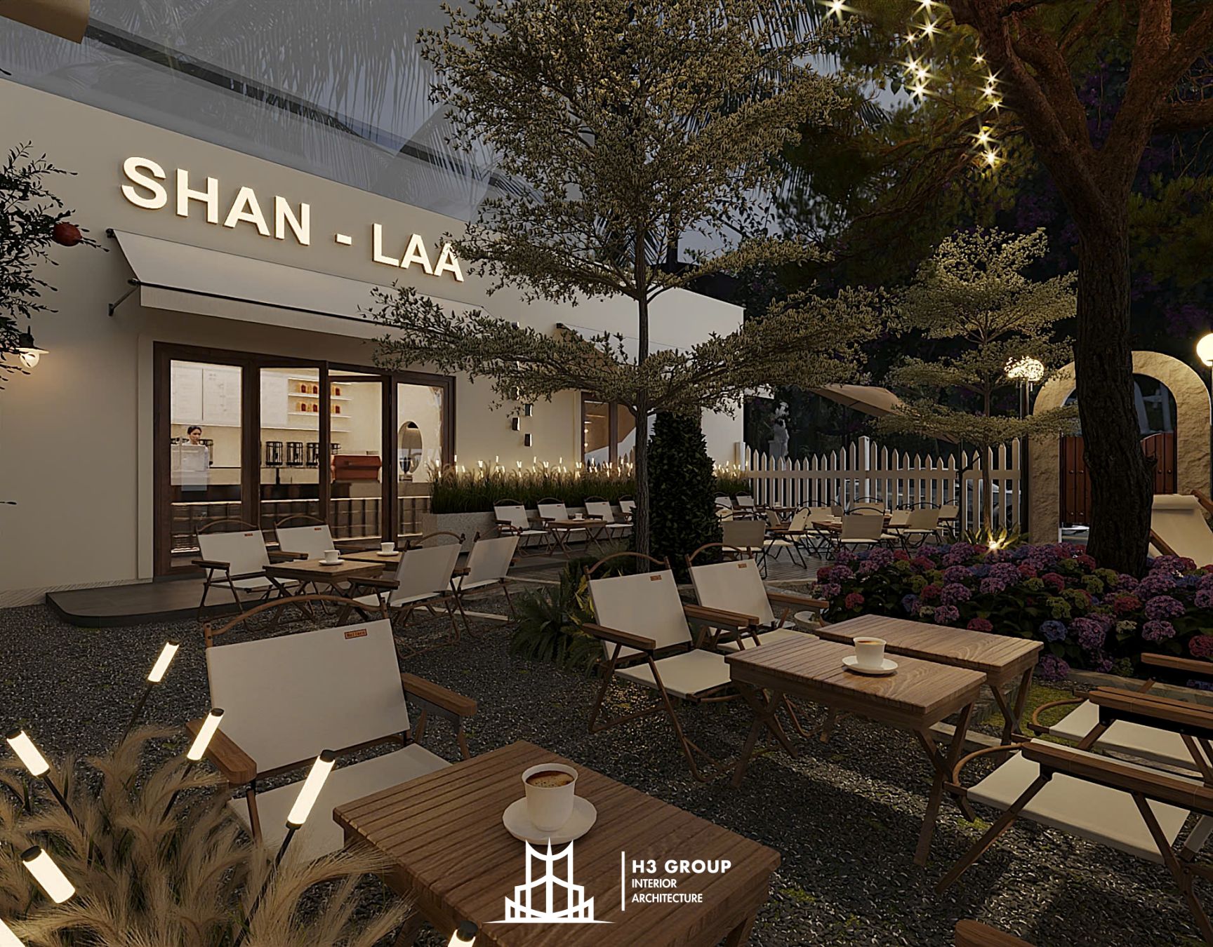 Nhịp sống đang phát triển mạnh mẽ tại khu vực Hoài Đức (Hà Nội), Shan – Laa Cafe xuất hiện như một làn gió mới mẻ, mang đến trải nghiệm café hiện đại, trẻ trung và gần gũi với thiên nhiên. Dự án được H3 Group thiết kế v ới mục tiêu tạo nên một địa điểm tụ họp mới cho giới trẻ địa phương, Shan – Laa không chỉ là quán café đơn thuần mà còn là không gian trải nghiệm.