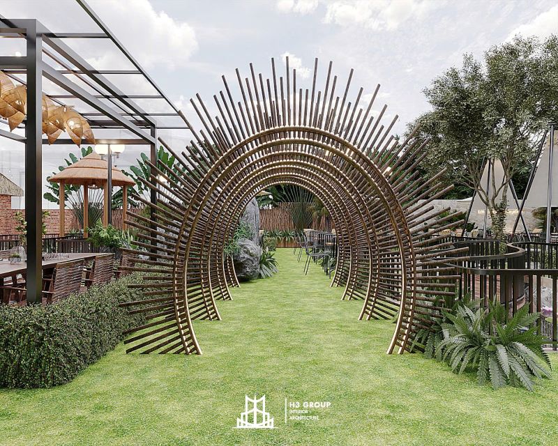 Vòm cổng sắt sẽ là một điểm nhấn thú vị cho không gian sân vườn. Với thiết kế cầu kỳ và sáng tạo, những vòm cổng sắt này sẽ không chỉ giúp tạo ra một lối vào ấn tượng mà còn mang lại những góc check-in tuyệt đẹp, tăng cường trải nghiệm dịch vụ cho khách hàng. Các cổng sắt có thể được trang trí bằng cây xanh, hoa lá để tạo không khí tươi mới và lãng mạn.