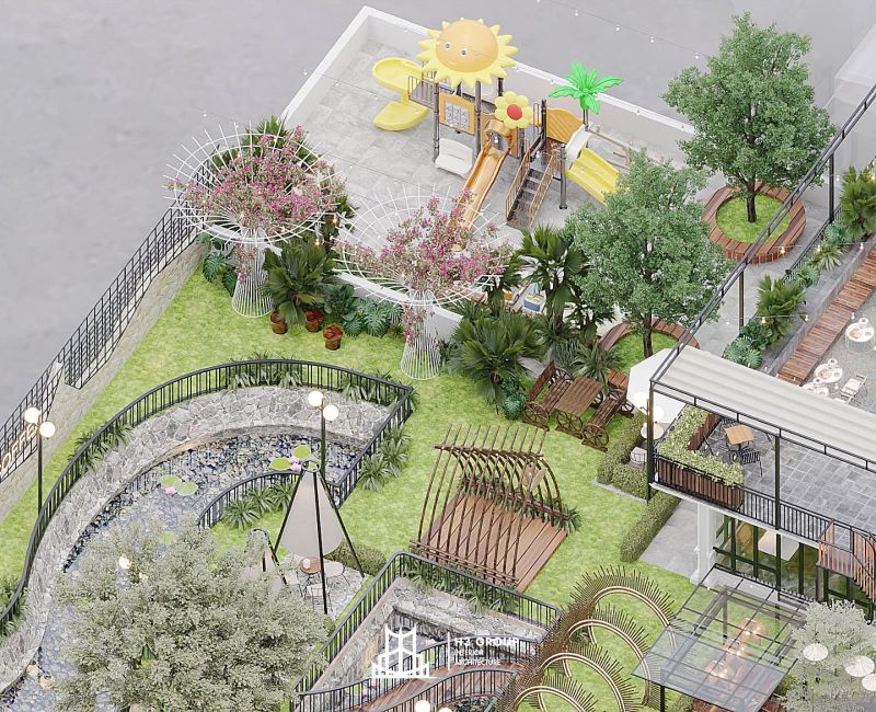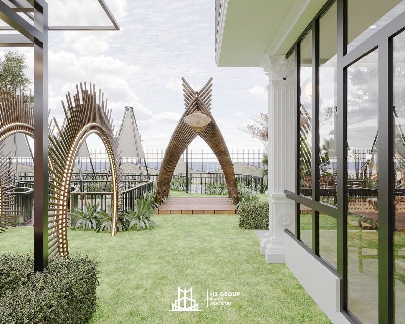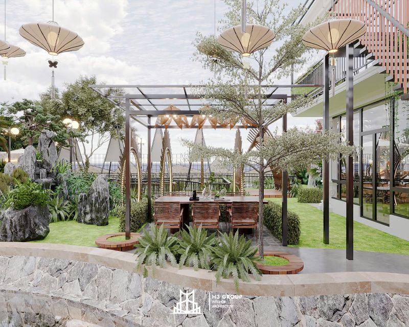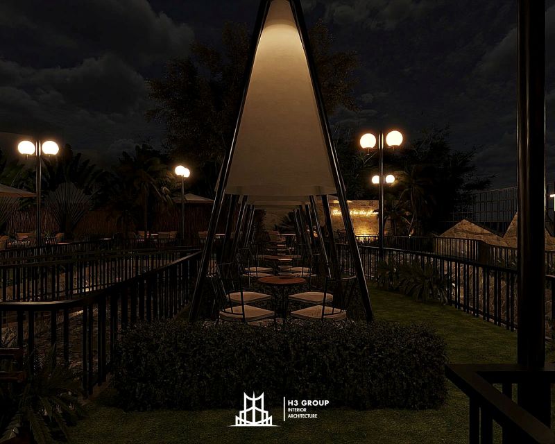 Những tròi nghỉ dạng tháp được bố trí trong không gian sân vườn sẽ là điểm nhấn đặc biệt. Những tròi nghỉ này không chỉ mang đến sự thư giãn, mà còn tạo không gian riêng tư cho khách hàng muốn tận hưởng vẻ đẹp thiên nhiên xung quanh. Với thiết kế độc đáo, những tròi nghỉ tháp sẽ là nơi lý tưởng để check-in, tạo những bức ảnh đẹp mắt cho khách hàng.