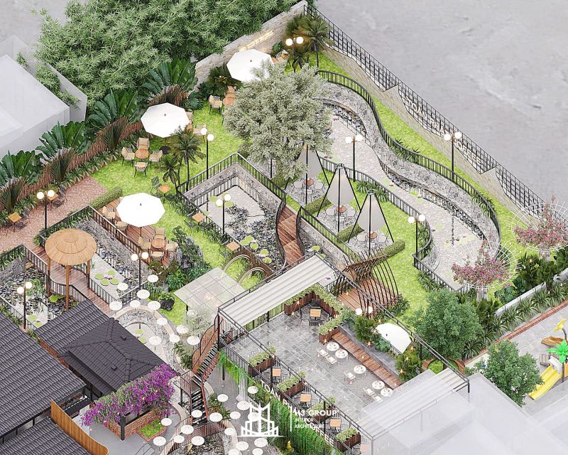 - Mục tiêu dự án: Kiến tạo lên một không gian ăn uống và cafe sân vườn gần gũi với thiên nhiên, làm sao mỗi vị khách hàng đến đều được thư giãn, như đang sạc lại năng lượng sau những ngày làm việc vất vả.